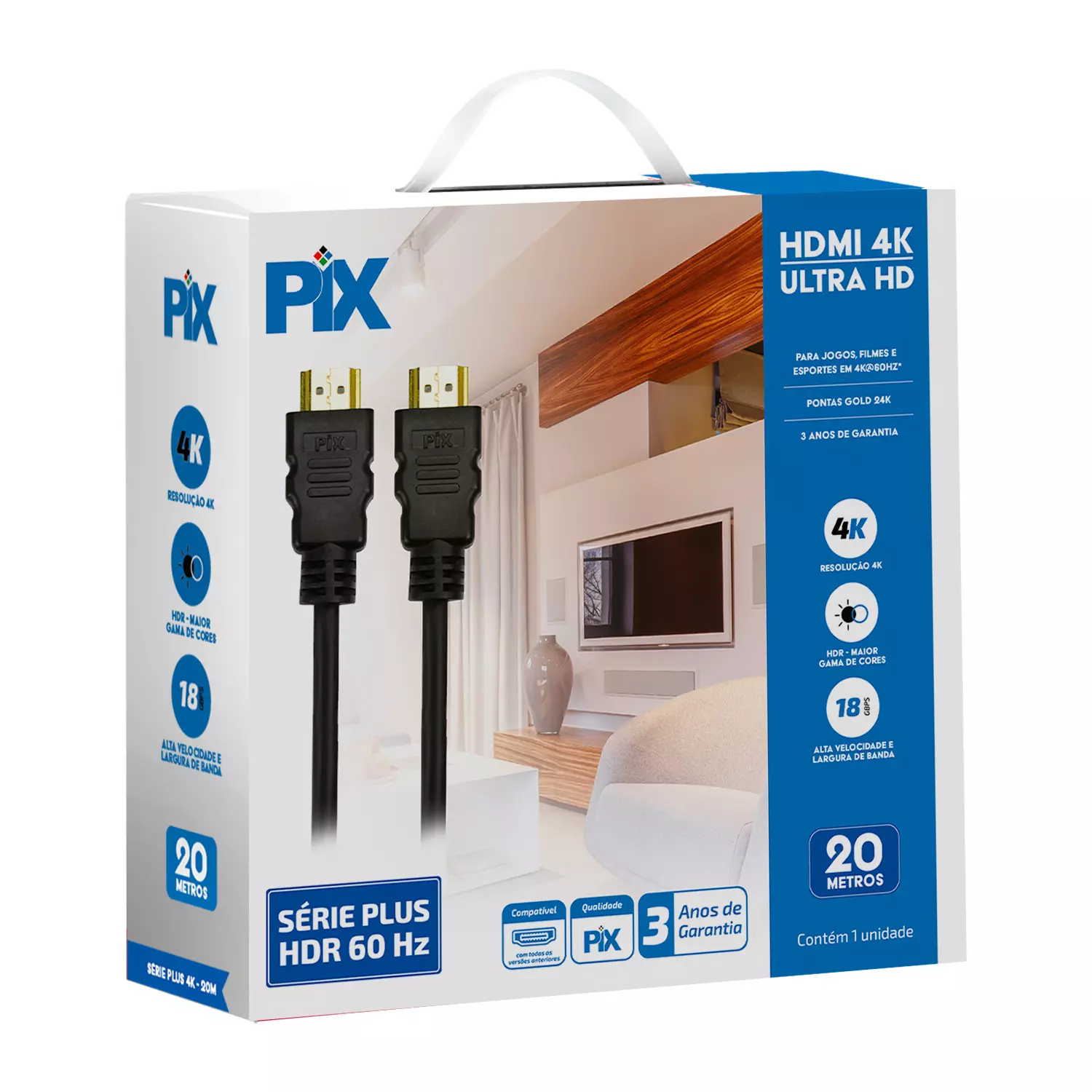 O cabo HDMI Gold da PIX é compatível com saída de cor sem compressão em resolução total, possibilitando a melhor qualidade em games e conteúdos de mídia em computadores.