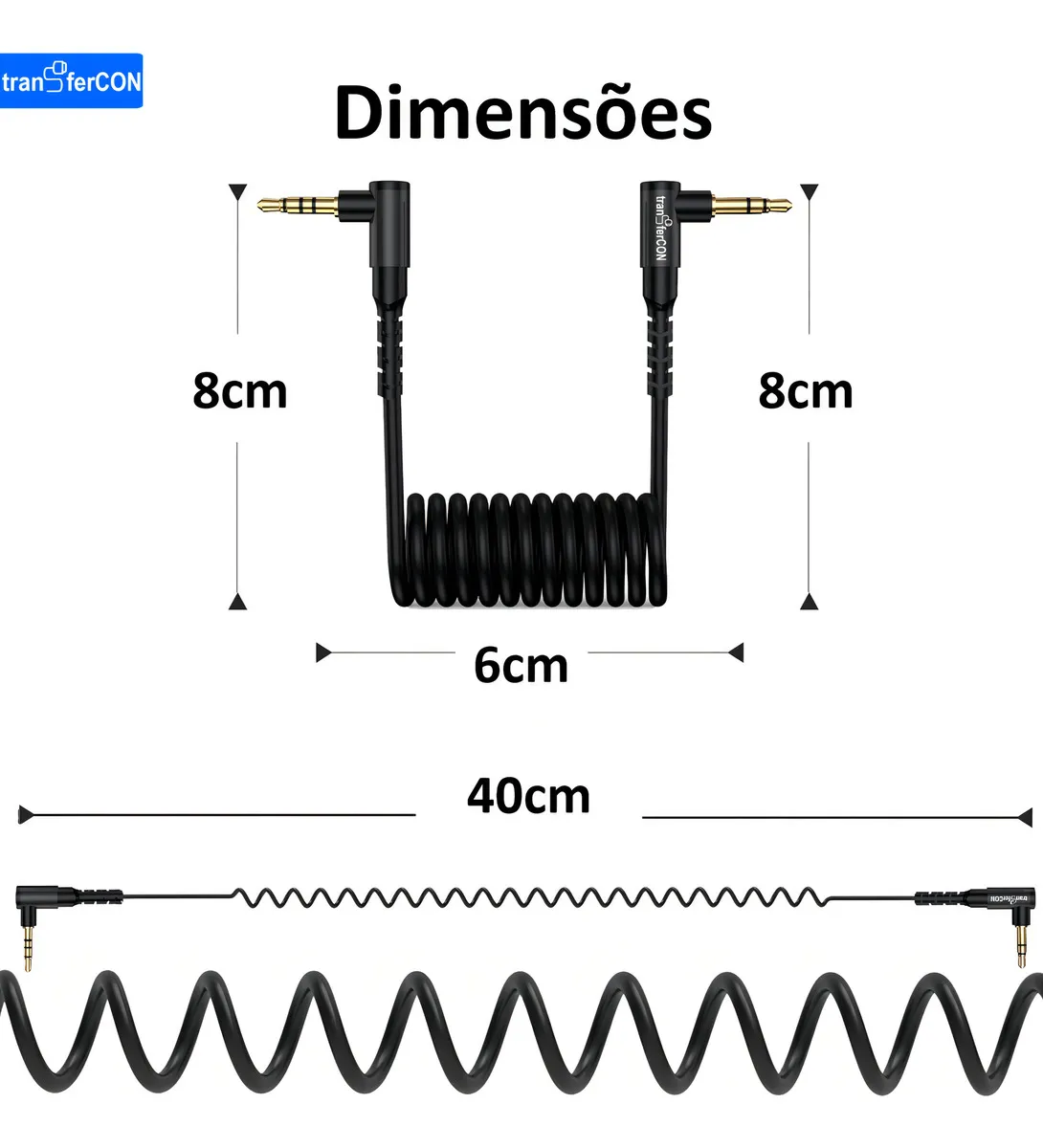 • Cabo Espiral Transfercon FL-106 P2 / P3 3,5mm TRS /TRSS Microfone Celular / Tablet