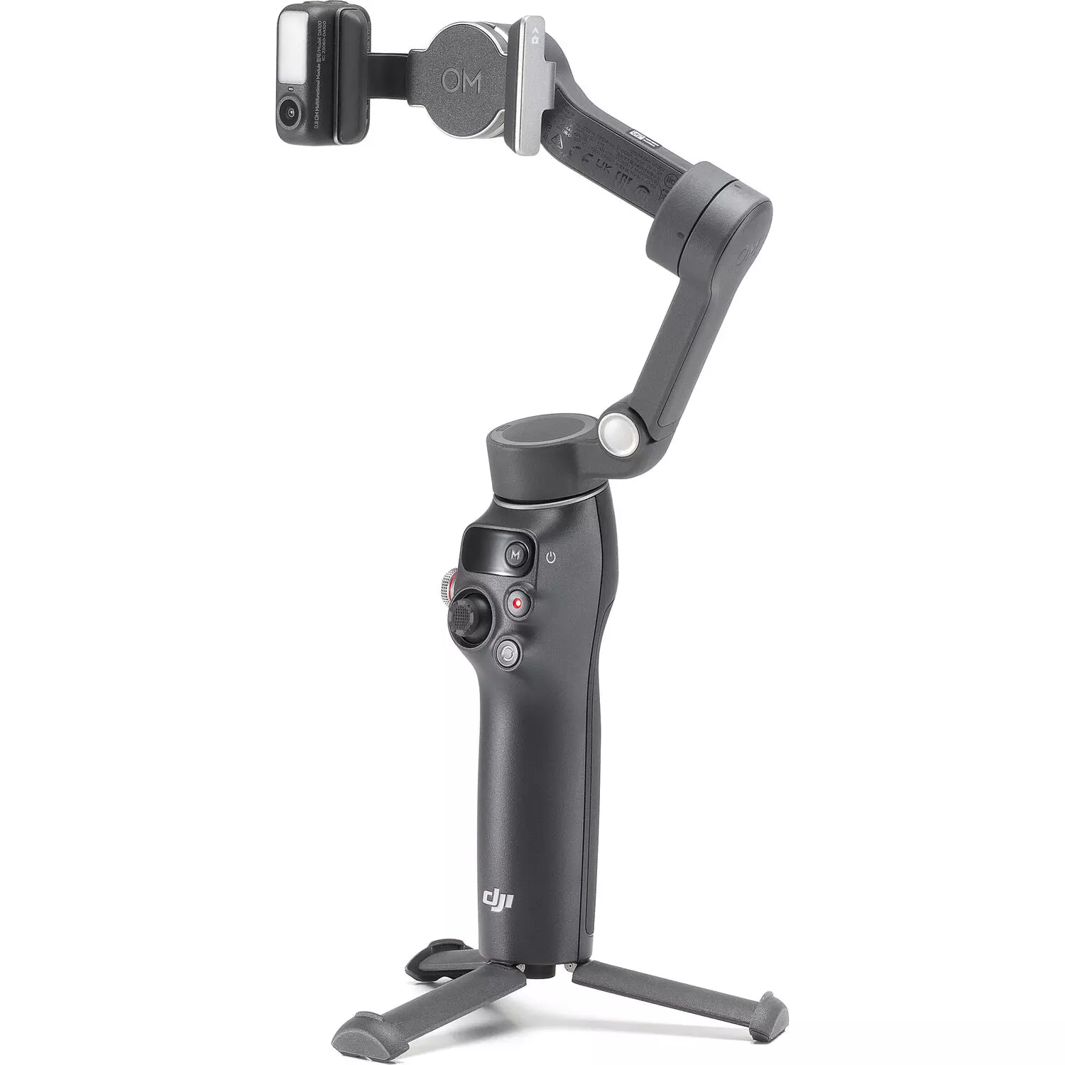 O gimbal possui uma nova versão da presilha magnética para celular, compatível com smartphones de até 8,4 cm de largura em uma interface de montagem rápida, além do módulo multifuncional OM para tecnologia de rastreamento aprimorada, controle por gestos e luz de preenchimento.