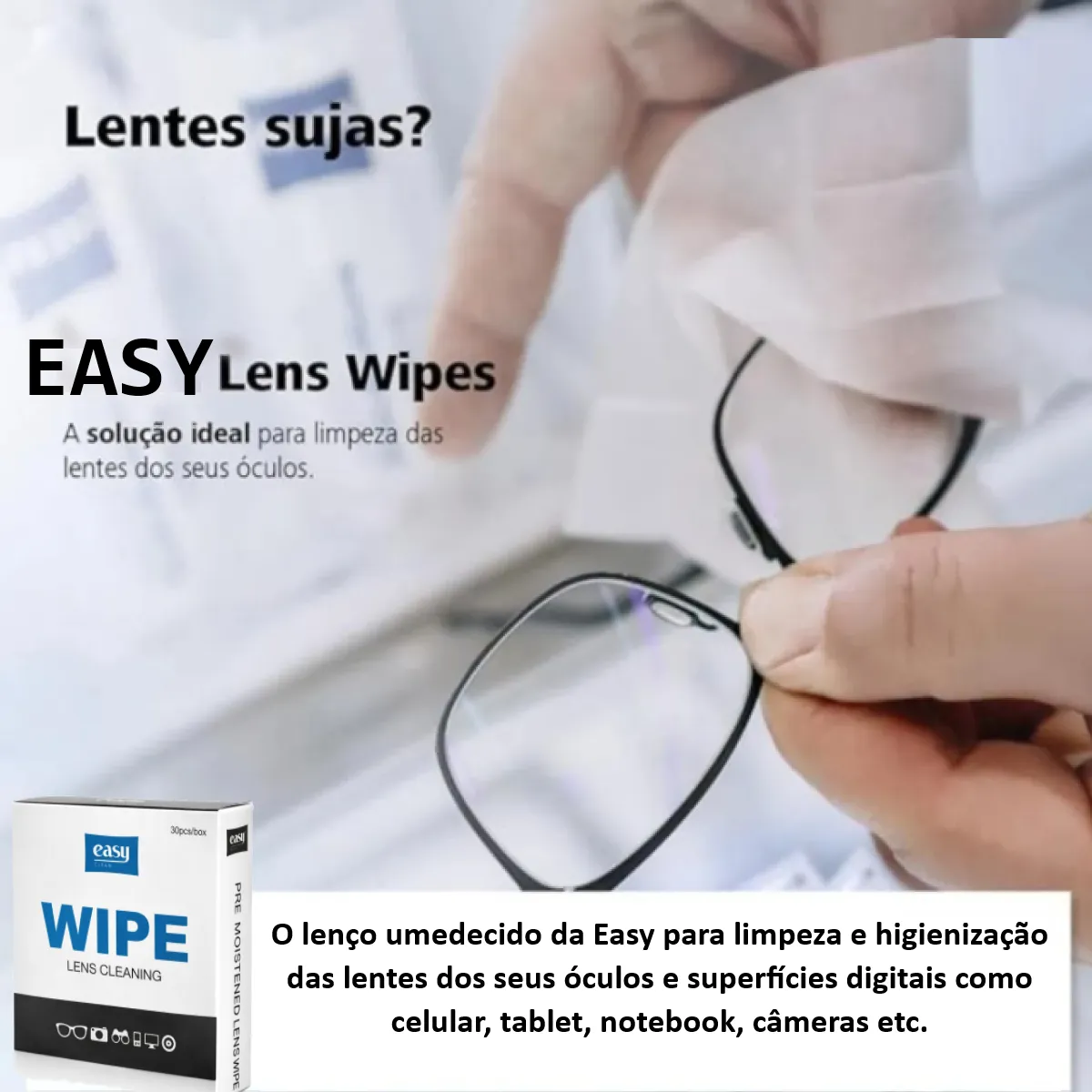 Lens Wipes Easy Clean Com 30 Lenços Umedecidos embalados individualmente!