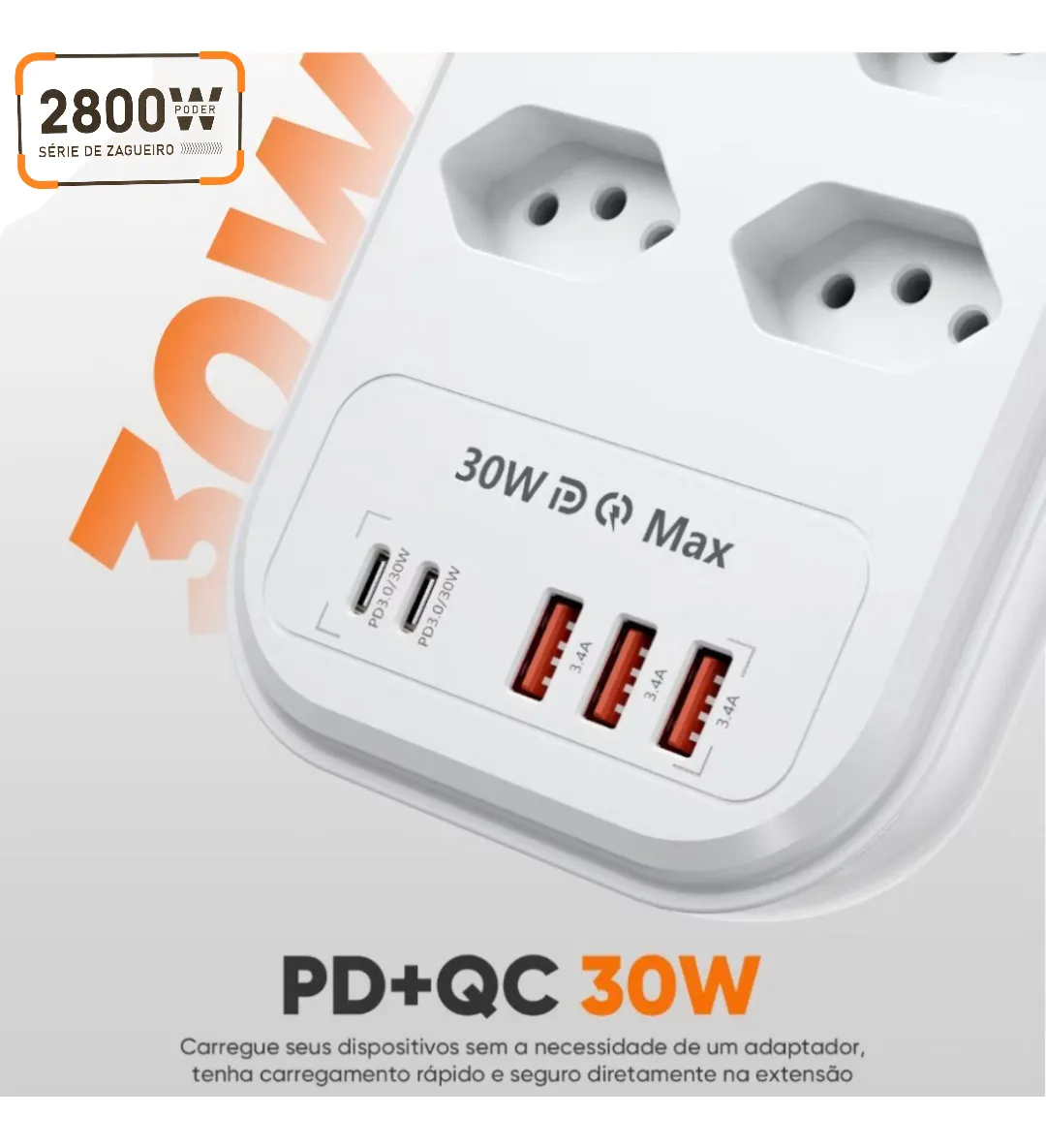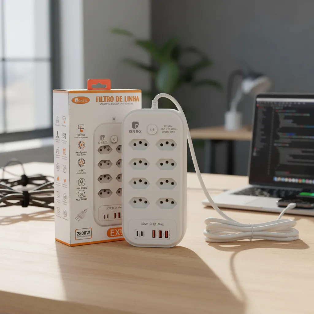 A Extensão Elétrica é uma ótima solução para expandir conexões elétricas de uma forma bem segura. Com 8 tomadas universais de 3 pinos (10a – Pino fino), 3 portas USB integradas ,e mais 2 entradas PD Turbo , esta régua oferece espaço de sobra para alimentar seus dispositivos eletrônicos. Com um cabo de 2metros de comprimento, poderá posicionar a régua onde for mais fácil.