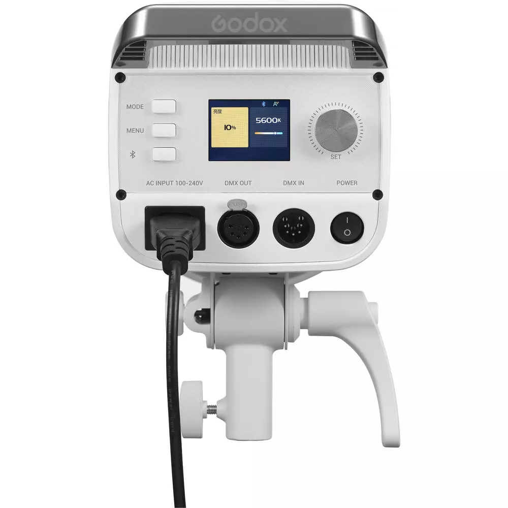 O gerenciamento integrado do equipamento é possível através dos controles locais traseiros e da tela colorida. Um grande destaque desta unidade é o novo botão de reset Bluetooth da Godox, que proporciona maior eficiência na configuração de múltiplas luzes. Além disso, a luz também pode ser controlada via aplicativo ou por DMX com fio.