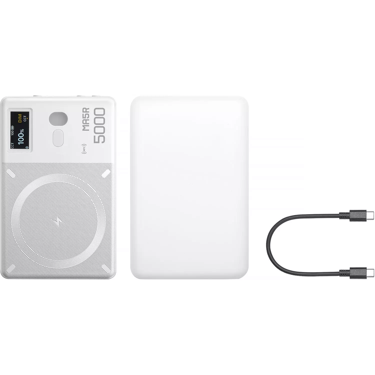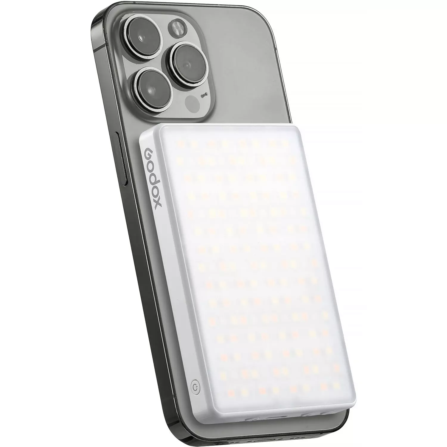 Brilhante e compacta, a MA5R RGB LED Light and Power Bank da Godox é um painel colorido de 10,7 x 6,8 cm que carrega seu celular e cria efeitos de iluminação vibrantes. Seu carregador portátil magnético sem fio oferece mais de 220 minutos de autonomia com apenas 90 minutos de carga.