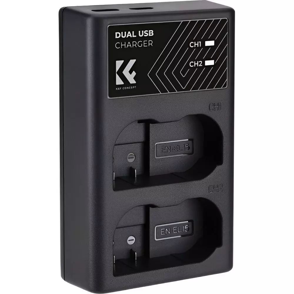 Compatível com as baterias EN-EL15, EN-EL15a, EN-EL15b, EN-EL15c e K&F Concept, garante um desempenho excepcional e máxima compatibilidade. Equipado com um inovador sistema de carga dupla, este carregador permite o carregamento simultâneo de duas baterias, reduzindo drasticamente o tempo de espera.